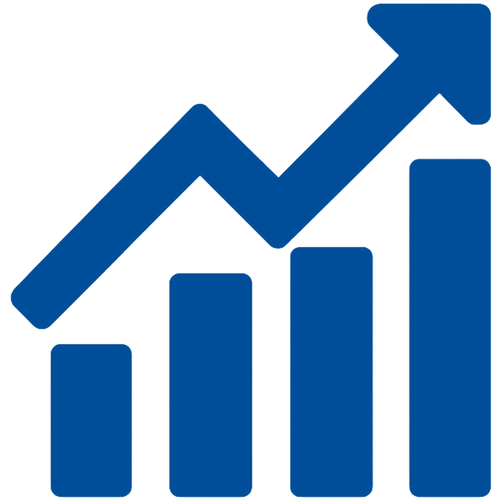 Blue upward trending arrow over a bar graph showing growth.